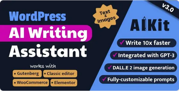 AIKit is a WordPress plugin that integrates your WordPress website directly with OpenAI’s GPT-3 which allows you to leverage AI to generate content and images, write complete paragraphs on any topic you can imagine, summarize text, paraphrase, generate catchy marketing copy, titles, simplify hard-to-comprehend text, and much more.